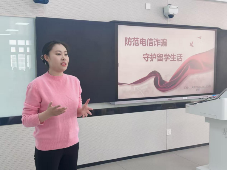 为进一步提升中外学生的法律素养,增强他们在学习和生活中知法、懂法、守法、用法的能力,汉学院联合大连市旅顺口区人民法院开展了主题为“以法为伴·护航求学之路”的法治宣传教育讲座。邀请曹艳鹏法官及法官助理薛颖同志作专题分享。讲座围绕真实案例剖析、常见诈骗手法解析及法律责任解读,旨在帮助中外学生有效识别并远离各类电信诈骗陷阱。