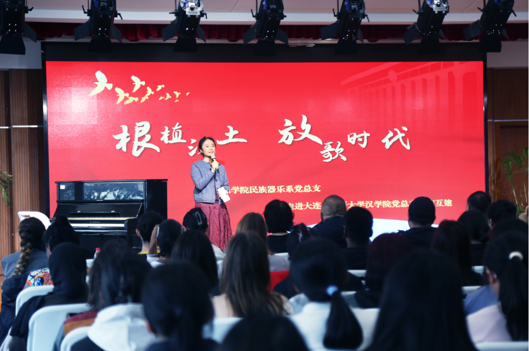 2025年11月14日,沈阳音乐学院民族器乐系党总支师生团队一行九人,来到大连外国语大学汉学院,于大学生活动中心二楼多功能厅开展“根植沃土,放歌时代”主题党建活动,为汉学院中外师生带来一场精彩纷呈的民族器乐盛宴。学校党委常委、组织部部长李辉、汉学院共建支部机关党委学术期刊管理中心党支部及机关党委校办企业综合有限公司党支部的教工党员以及汉学院百余名师生出席了本次活动。活动由汉学院党总支书记李虹瑾主持。