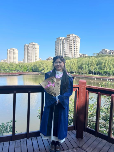 回想这段求学路,她满心都是感恩。对国际中文教育尚处于懵懂与憧憬之时,是恩师们用学识和经验为她引路,在她迷茫时给予方向;是同学们陪着她挑灯夜读、分享心得,那些并肩作战的日子,成了记忆里最温暖的光。时光匆匆,学生时代已然落幕,但在大外收获的热爱与勇气,会一直支撑着她坚定走下去。在这里,她也想把几点心里话分享给学弟学妹们: